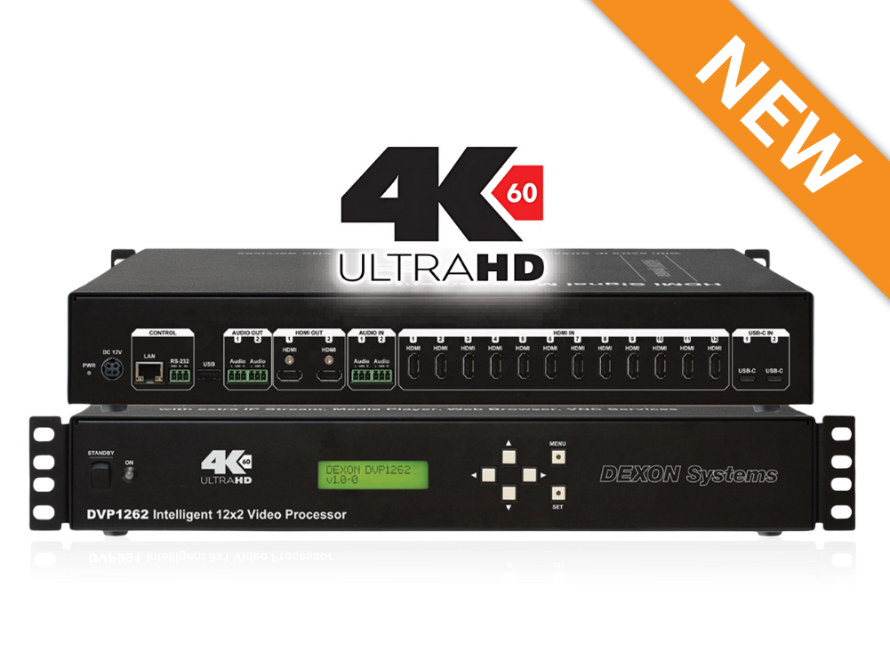 - DVP1262 video processor to accept 12x HDMI inputs and drive 2x HDMI outputs