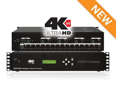 - DVP1644 video processor to accept 16x HDMI inputs and drive 4x HDMI outputs