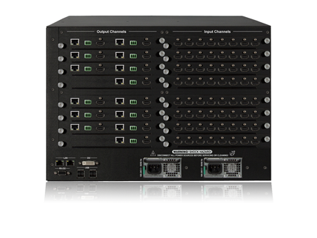 The modular chassis can accommodate different input boards and build up the custom configuration tailored to the project. Users can build small, medium or large configurations by using the very same board set and technology. Robust mechanics and logical interface design guarantee easy installation and operation. The chassis offers: